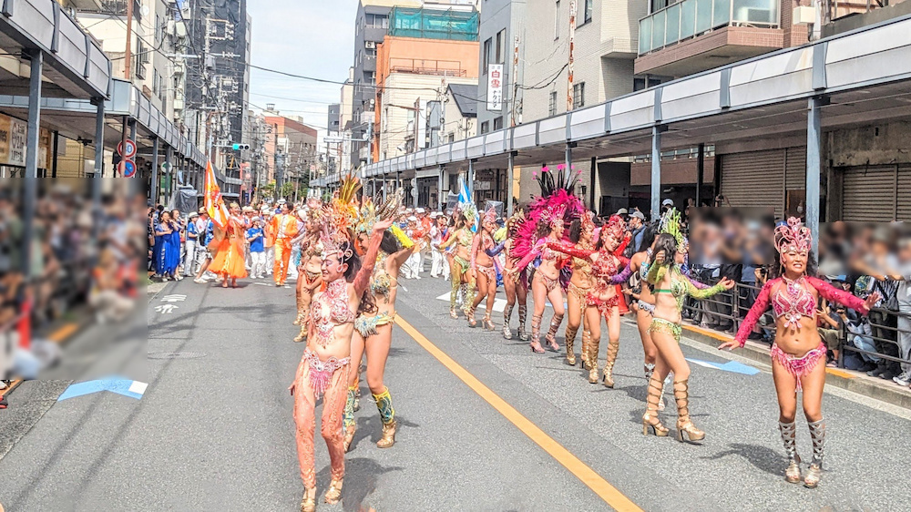 サンバパフォーマンスでは、きらびやかな衣装に身を包んだパフォーマーたちがおどる姿に、子どもから大人まで大はしゃぎ。