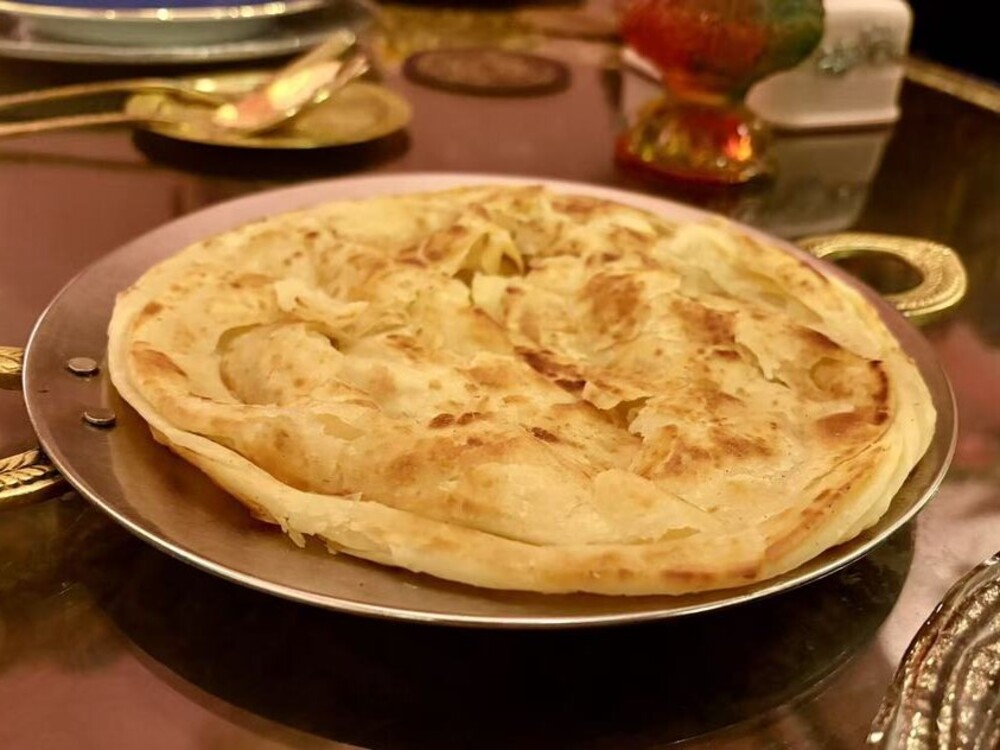 インド料理といえばふっくらとしたナンがおなじみですが、パラータはパイ生地のように生地が何層にも重なっているのが特徴です。