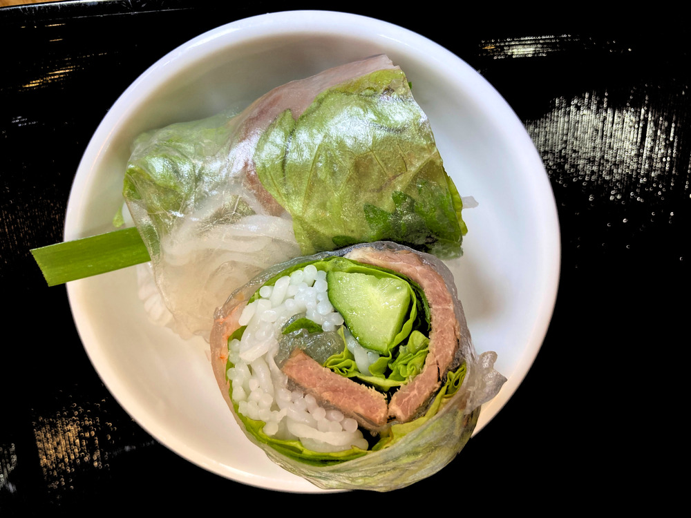 モチモチとした透明感のある皮に包まれた具材はシャキシャキと新鮮で、「これぞ本格的な生春巻き!」と感じました。セットについていたタレもとてもおいしかったです。
