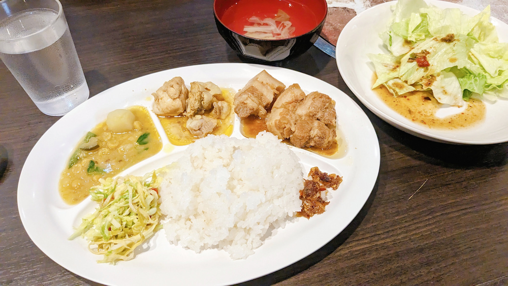 レモングラスで煮込まれた鶏肉は、爽やかな味わいでクセは強くありません。そして、「どんだけ煮込んだんだ?!」と思うくらいに、口のなかでほどけるような豚の角煮。スープはあっさりしていて、舌をホッと休めてくれます。