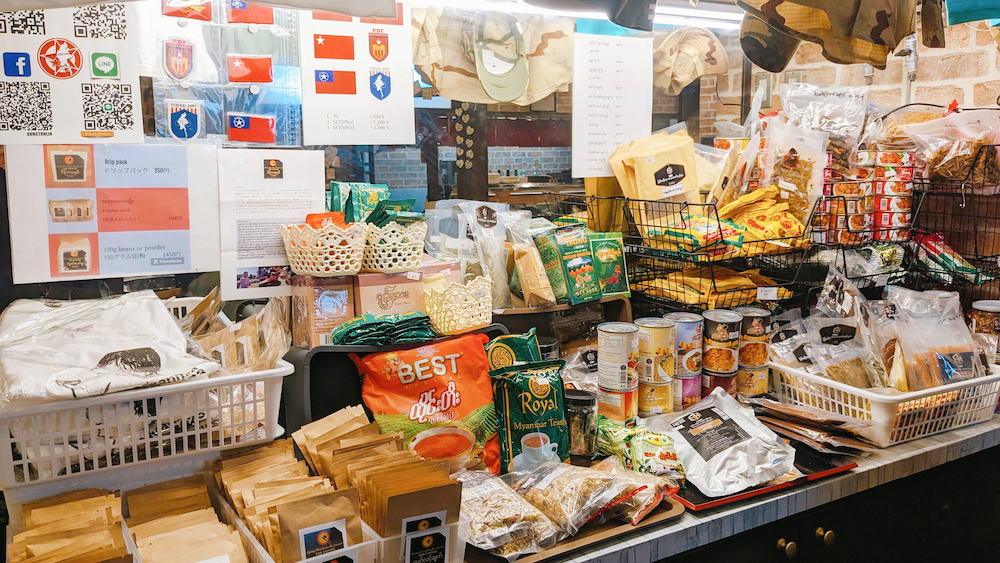 普通のスーパーでは見かけない、現地のお茶や缶詰、Tシャツなどの雑貨も売られています。一度だけミャンマーを訪れたことのある筆者は思わず見入ってしまいました。