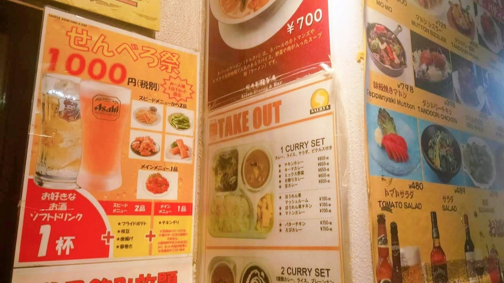 お店の外側にもメニューがびっしり貼られていました。ふと目に止まったのは『せんべろ祭』と書いてあるポスターです。お酒もアジアン料理も好きな私。これは入るしかないでしょう。