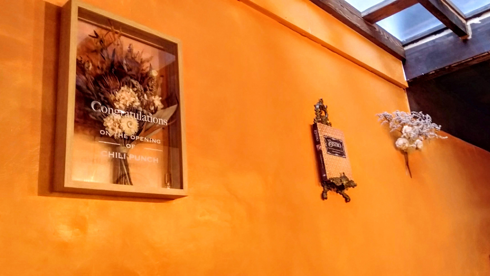 店主が自ら塗ったというオレンジ色の壁が、古民家の雰囲気ととてもマッチしています。