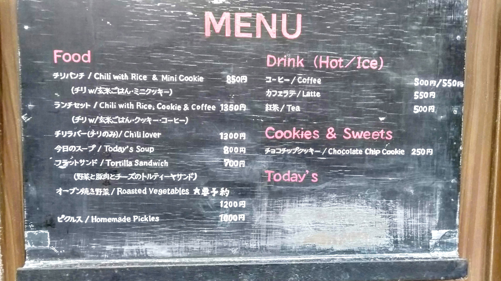 チリパンチは、チリビーンズ、チョコチップクッキー、コーヒーが看板メニューです。