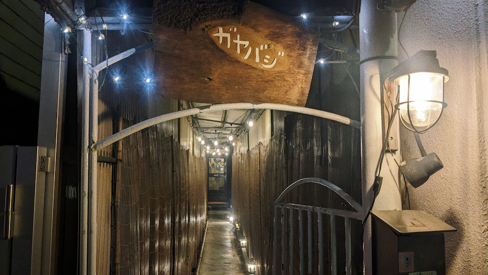 素朴な木の看板をくぐり抜けて、数メートル進むと扉があります。この細い路地が秘密基地に向かうように、ワクワク感を高めてくれました。