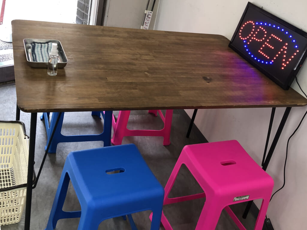 椅子が鮮やかなピンク&ブルーで南国っぽさを感じます。