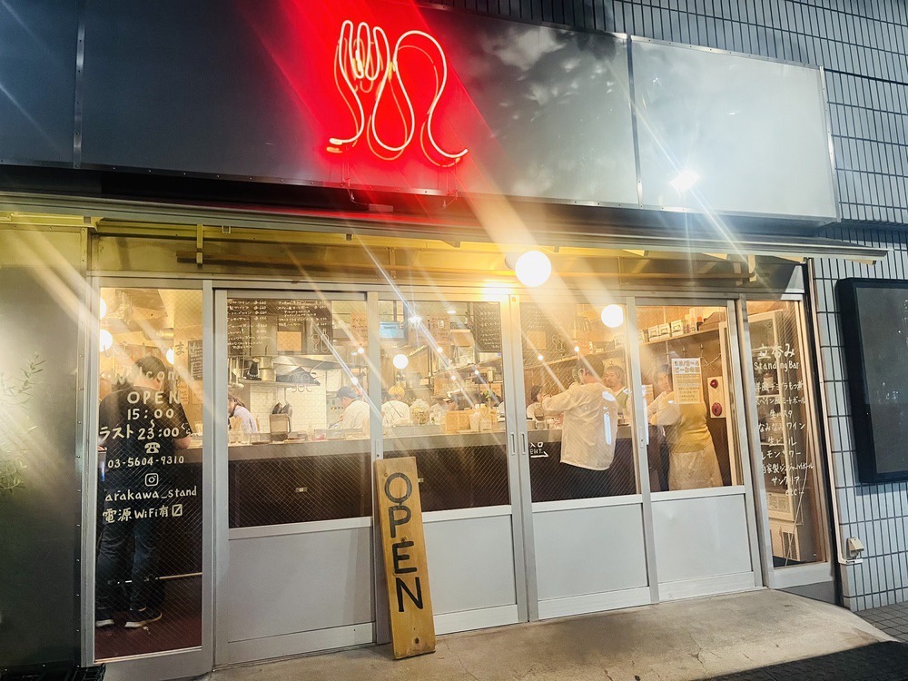 日暮里駅から徒歩2分!赤いネオン看板が目印のリーズナブルな立ち飲みバル「荒川STAND」