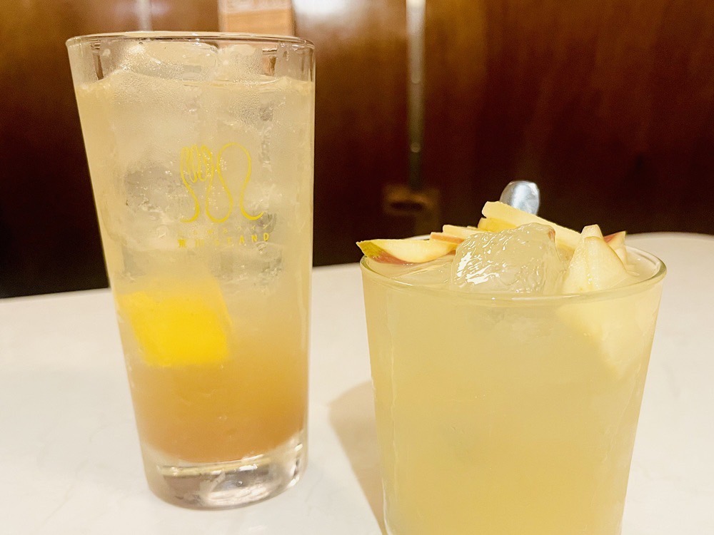 今回のドリンクは、金宮レモンサワーとしゅわしゅわサングリアの白を頼みました。