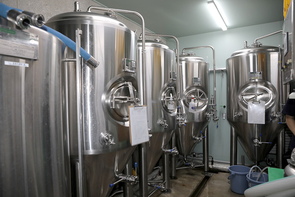 飲食スペースに隣接するビール工場には、所狭しとタンクがいっぱい。ホップを入れるタイミングなど少しの違いで味が大幅に変わっていくのだそう。そんな話を聞くことができました。