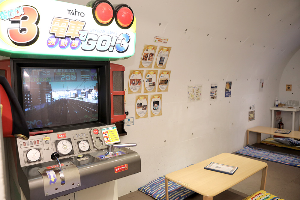 座敷席がある2階フロアには、アーケード版の「電車でGO!」が設置されていて遊ぶことも出来ます。100円で2回プレイ可。
