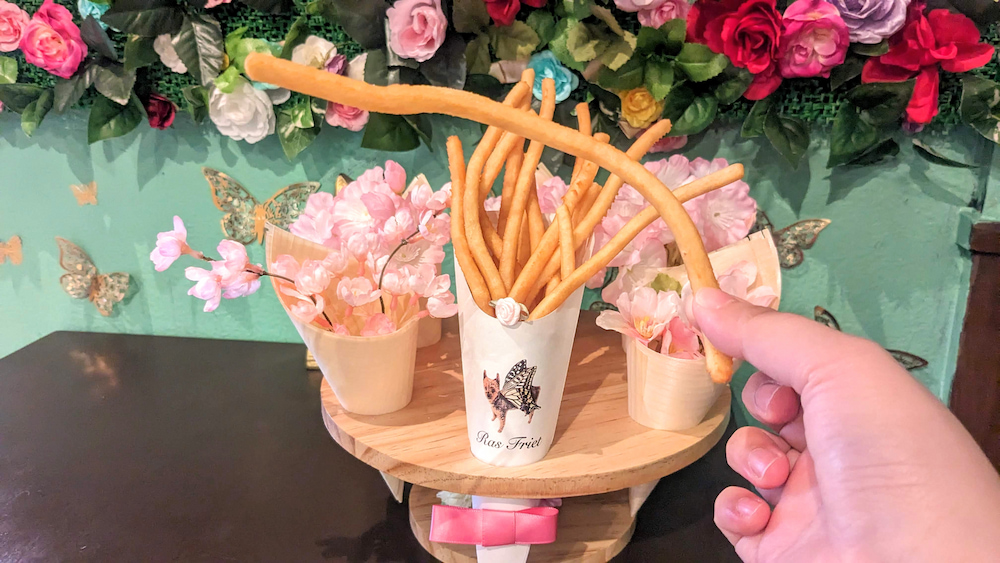 見た瞬間「うわぁ!かわいい!」と声が出てしまいました。こんなに華やかなデコレーションは見たことがありません。ラスポテトの長さにもおどろきました!