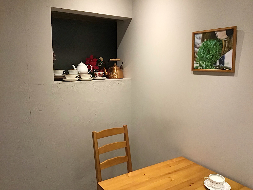 11月下旬に伺いましたが、一足早いクリスマスツリーが出ていました。小窓のちょっとした茶器や小物も季節感があってすてきです。