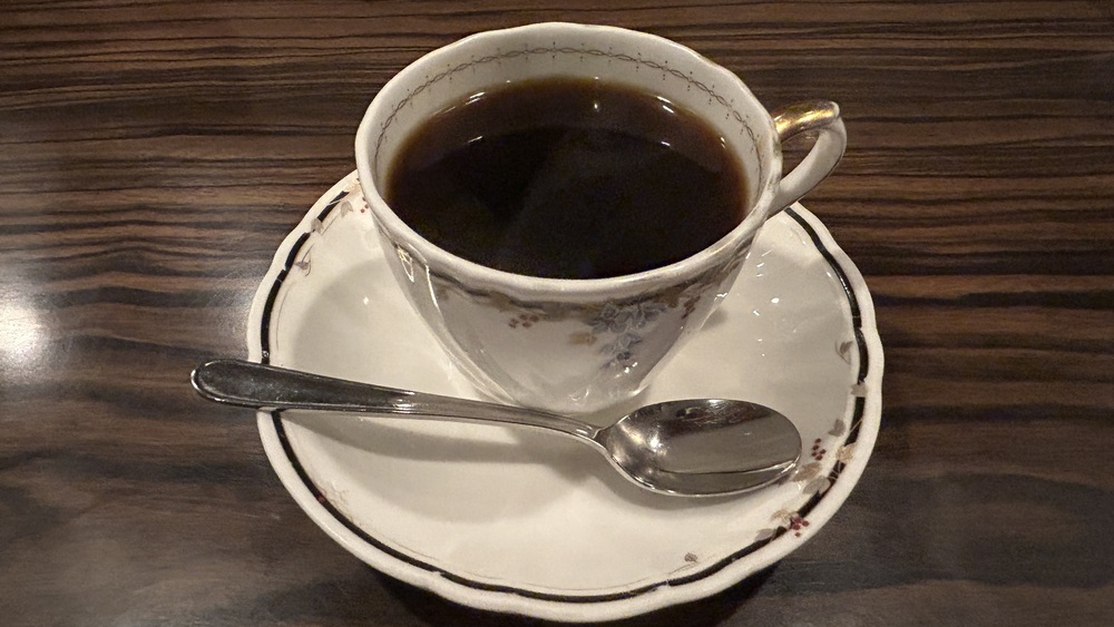 コーヒーは、ライト・ブレンドを選びました。ライト、といってもそれほど軽くありません。酸味も苦みもおだやかですが、ネルドリップでしっかりと抽出されており、ほどよいコクがあります。とても飲みやすいコーヒーです。クラシックなカップとソーサーでサービスされます。とても落ち着いた気持ちになりますね。