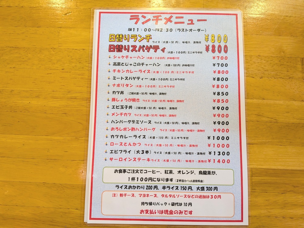 チャーハン、カレーライス、スパゲティ、カツ丼、豚しょうが焼き……そのほかにも豊富なラインナップが揃っています!