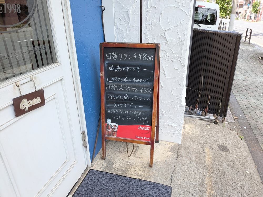 青と白を基調とした店構えは、どことなくレトロで親しみやすい印象。ちょっと昔の洋食屋さんのような雰囲気もあり、近所にこういうお店があるとうれしくなります。