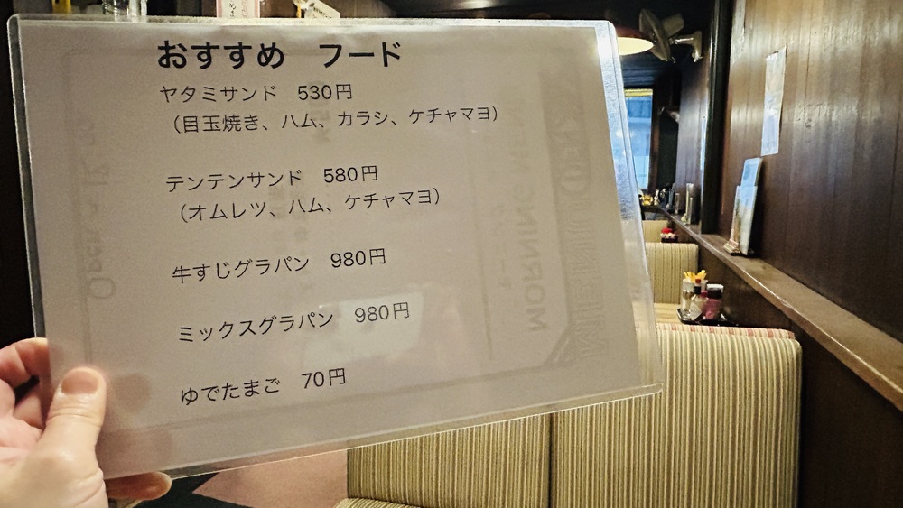 フードメニューは種類が豊富です。トーストやスパゲティーなどの軽食のほか、アイスクリームやフロートなど懐かしいスイーツも並びます。特製プリンが人気とのことです。