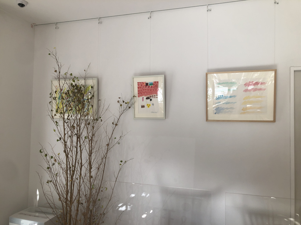 入り口から見て左手側には、お店の雰囲気にぴったりな淡い色合いのアート作品が飾られています。