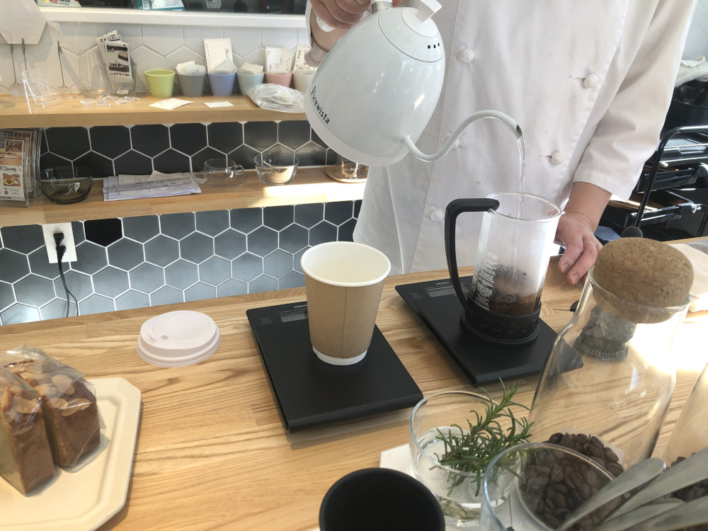 コーヒーは注文してからフレンチプレスで淹れてくれます。特別に許可を頂いて、その様子を撮影しました。