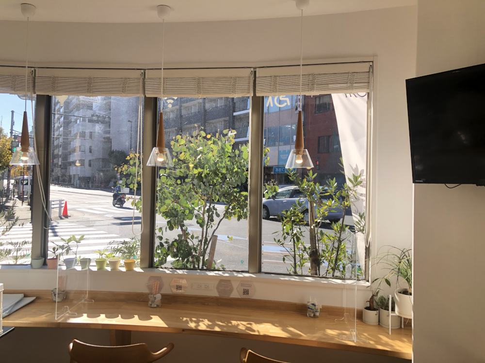 店内に入ると、その明るさに驚きます。大通り沿いの角地なので遮るものがなく、大きな窓からたくさんの光が入ります。