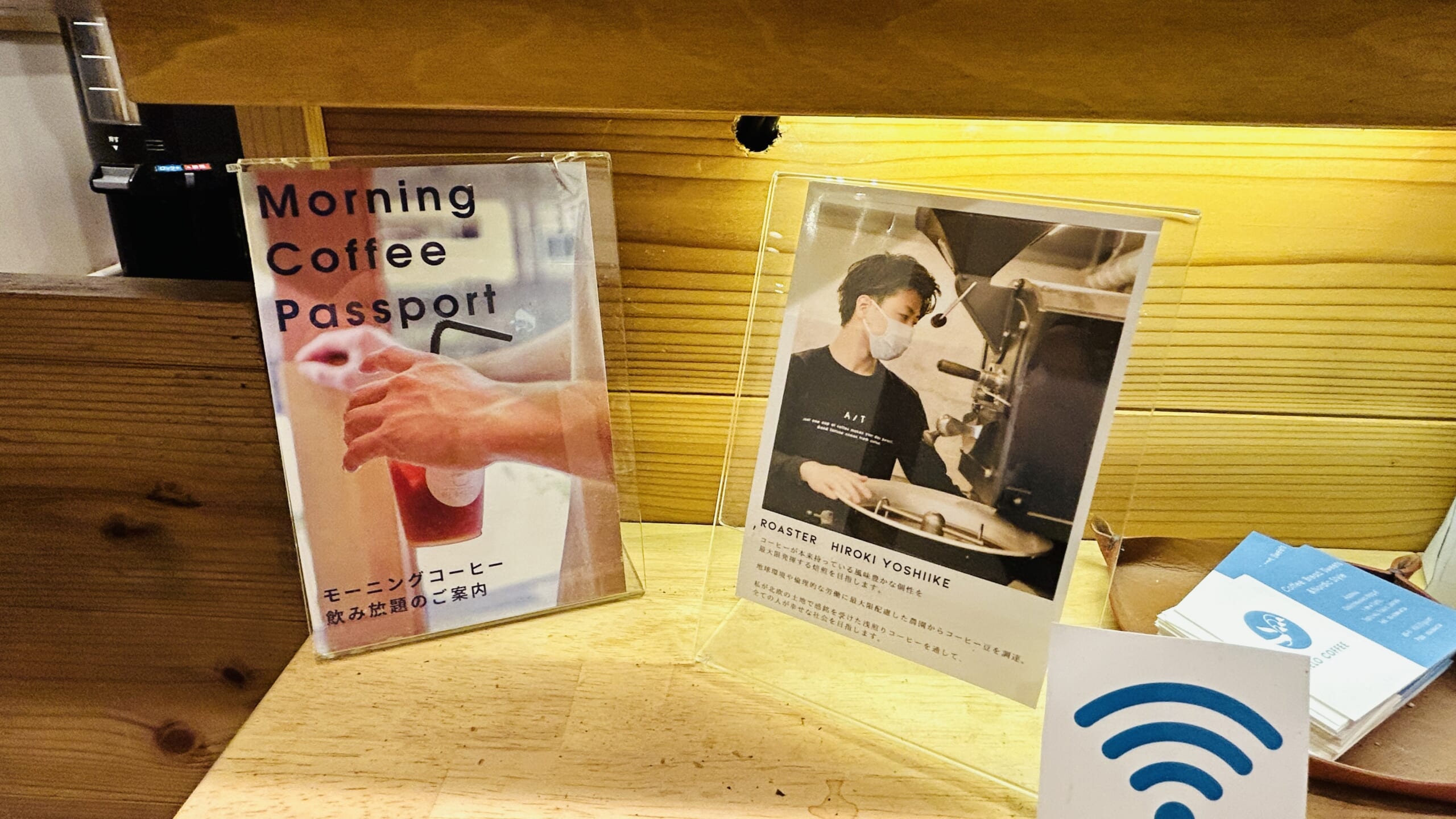 久しぶりに浅煎りコーヒーのおいしいお店に出会うことができ、すっかりくつろいでコーヒーを楽しんでいると、お客様がたくさん来てあっという間に満席になってしまいました。ひとりカウンターでコーヒー片手にたたずむ方、会社帰りに仲間同士でワイワイと話す方、デート前に待ち合わせついでにカフェラテで一息つくカップルもいます。街で暮らし、働く方に人気の店のようです。