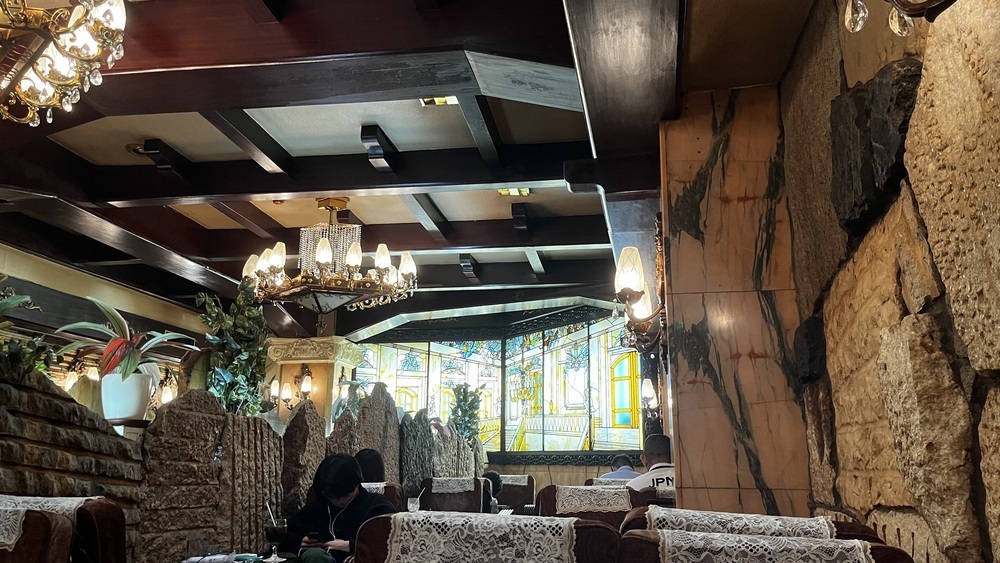 店内は大きなシャンデリアや輝かしいステンドグラスが備え付けられています。