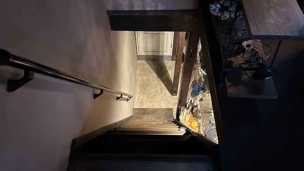 2階席へと案内されたので、会計の横にある階段を上ろうとしたら…あまりの急傾斜と狭さにびっくりしました。