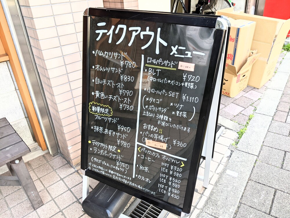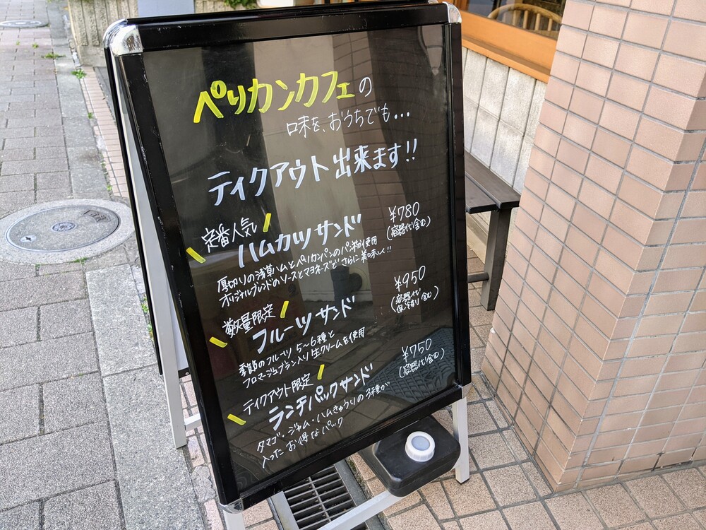お店に着くと、テイクアウトメニューの看板がありました。