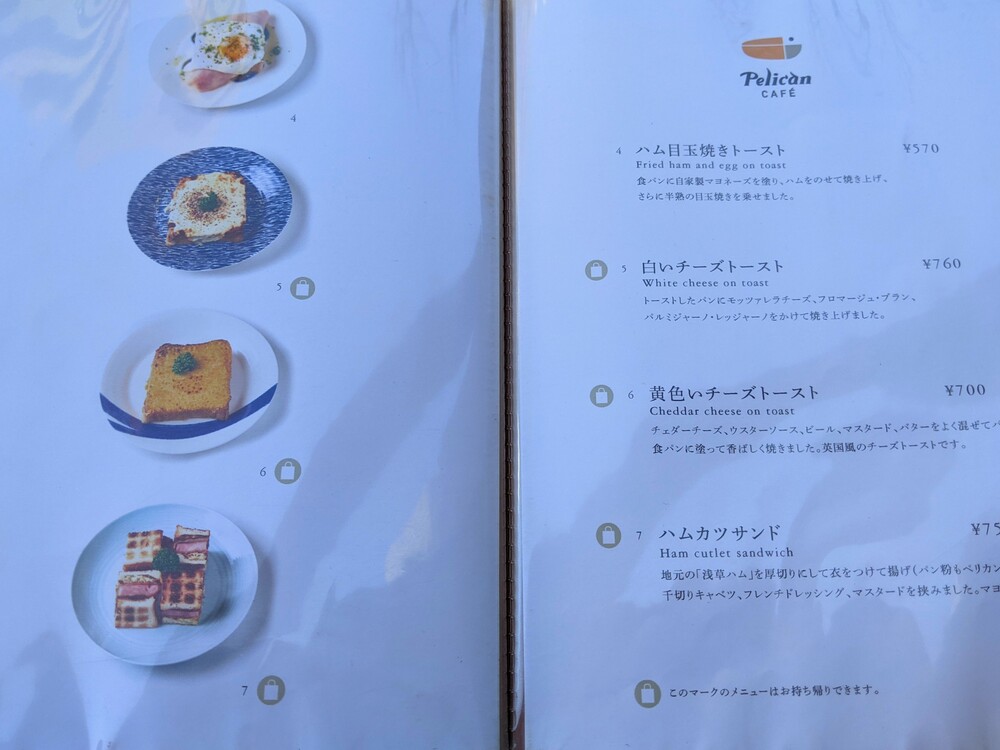 「ペリカンカフェ」には、食パンのおいしさを生かしたメニューがたくさんあります。