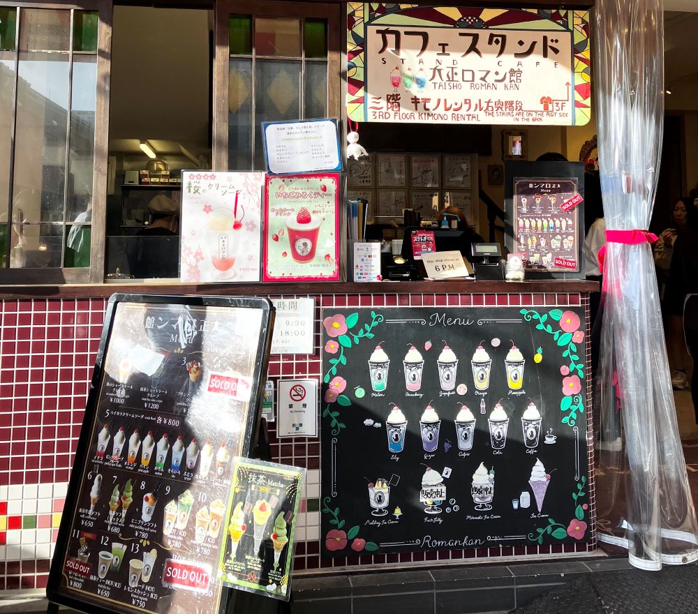 カフェスタンドは、大正ロマンを感じる雰囲気で、まるで大正時代にタイムスリップしたかのようです。