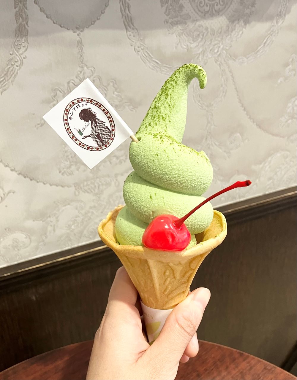 この日は暑かったので、抹茶ソフトクリームをオーダーしました。