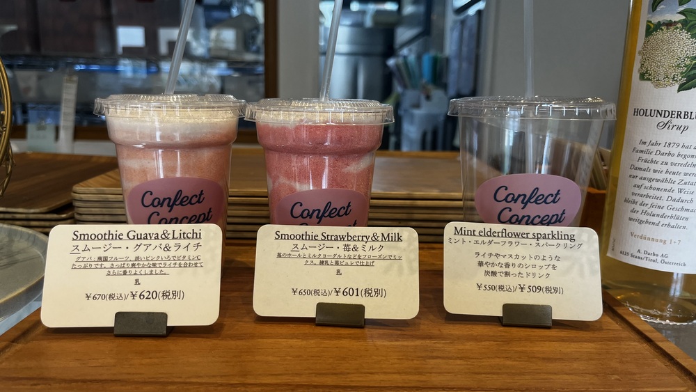 「concept 」では、フルーツを使った冷たいスムージーが販売されいます。個人的におすすめなのが苺&ミルク味です。