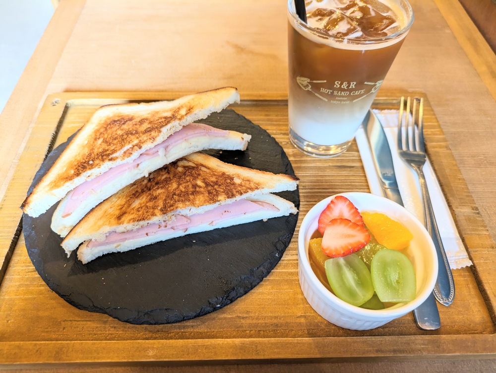 訪れたタイミングはモーニングメニューの時間帯だったので、ハム&チーズ ホットサンドセットを頼みました。