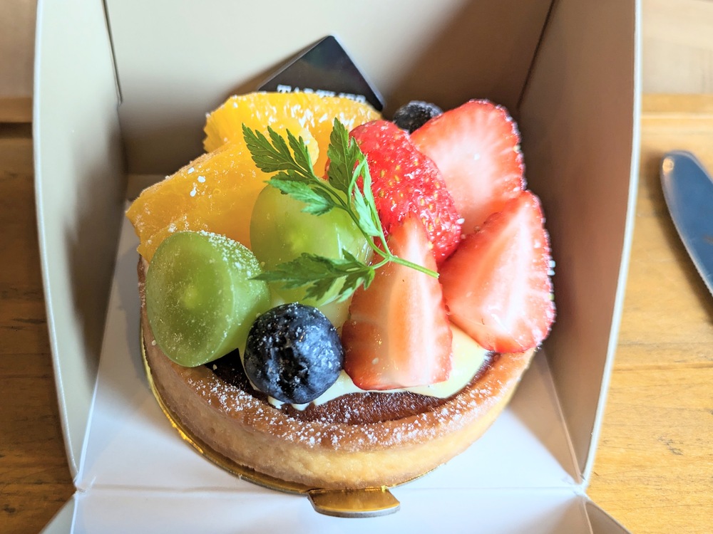 サクサクのタルト生地に、甘すぎないクリーム、みずみずしいフルーツ。食感と味のバランスがよく、とてもおいしかったです。
