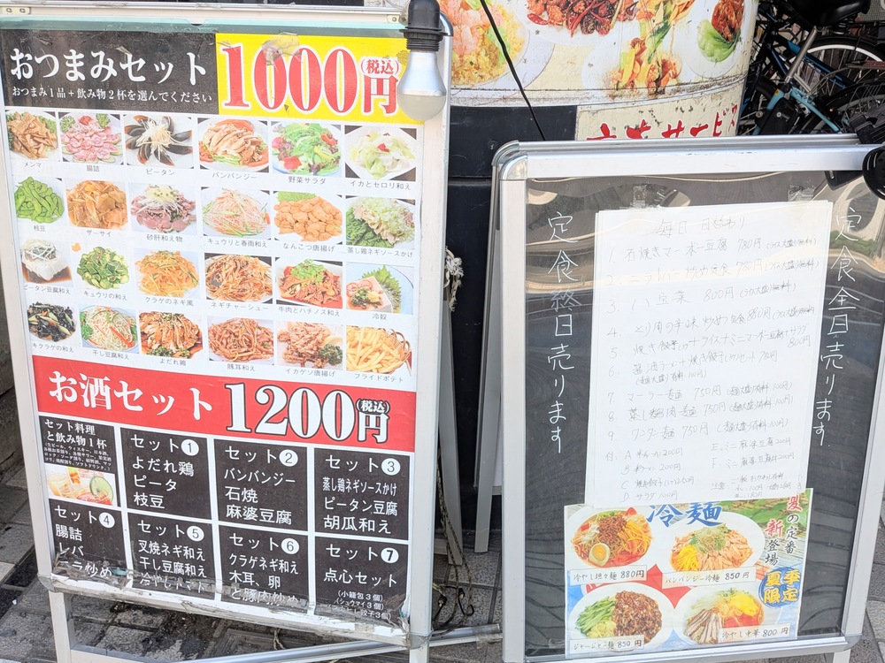 帰り際に店頭の看板を見てみたら、「おつまみセット」や「お酒セット」の紹介もありました。