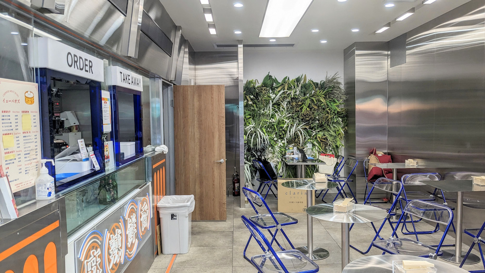店内はピカピカでネオン風の看板などからポップな印象を受けます。テーブルやシースルーの椅子にもこだわりを感じられますね。