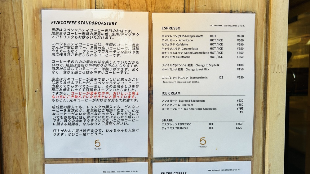 「FIVE COFFEE STAND&ROASTERY(ファイブコーヒースタンド&ロースタリ―)」