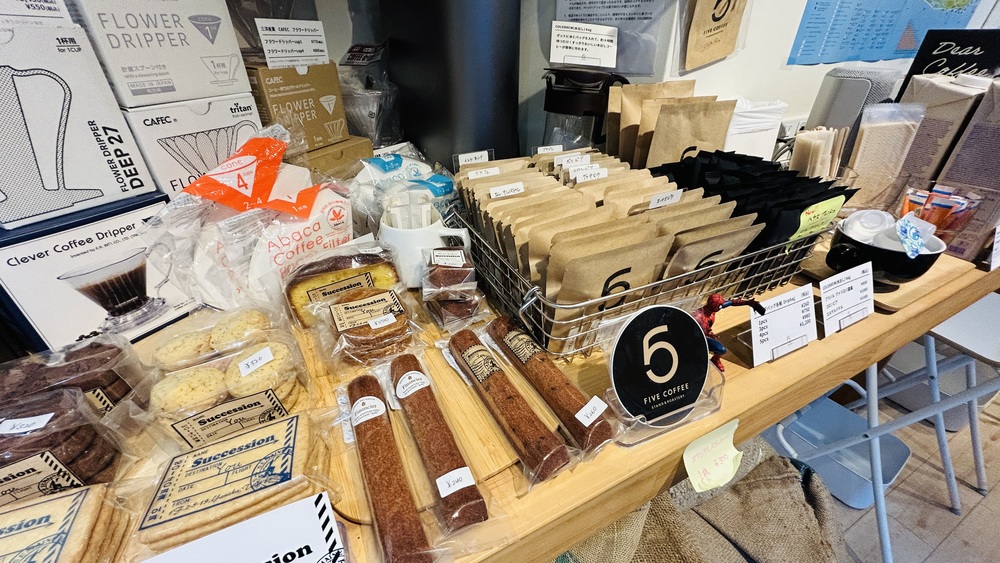 左側にはドリップパックや焼き菓子などがたくさん売っています。