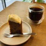 カフェインが無い分、コクはやわらかめのコーヒーです。ややフルーティさが残る中煎りのコーヒーはとても飲みやすく香りも爽やか。マグカップにたくさん入れてくださるので、まち散歩で乾いた喉を潤してくれます。