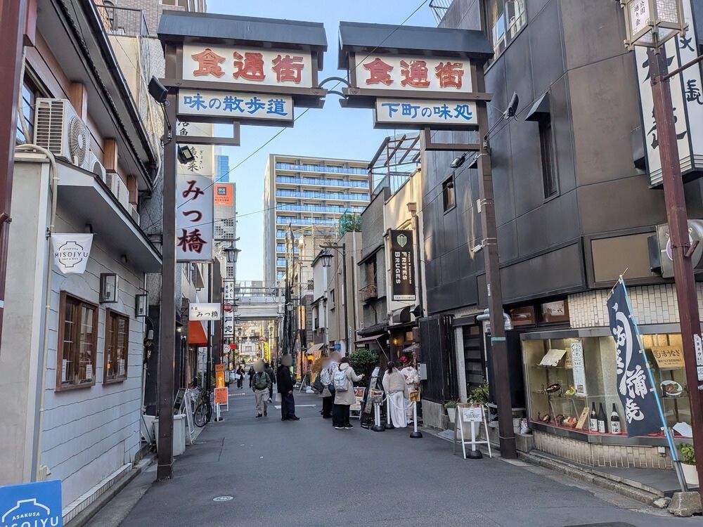 お店があるのは浅草の「食通街」で、雷門から徒歩約3分の場所です。