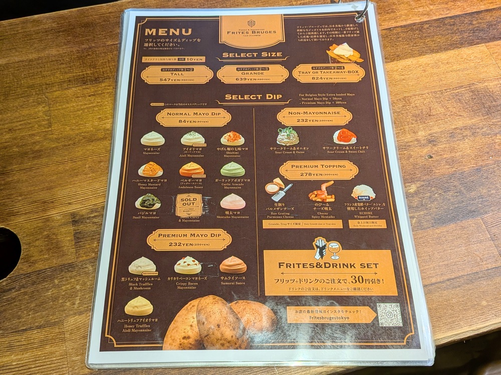 今回は、ベルギーの本格的なフリッツが味わえる「Frites Bruges(フリッツ・ブルージュ)」をご紹介します。
