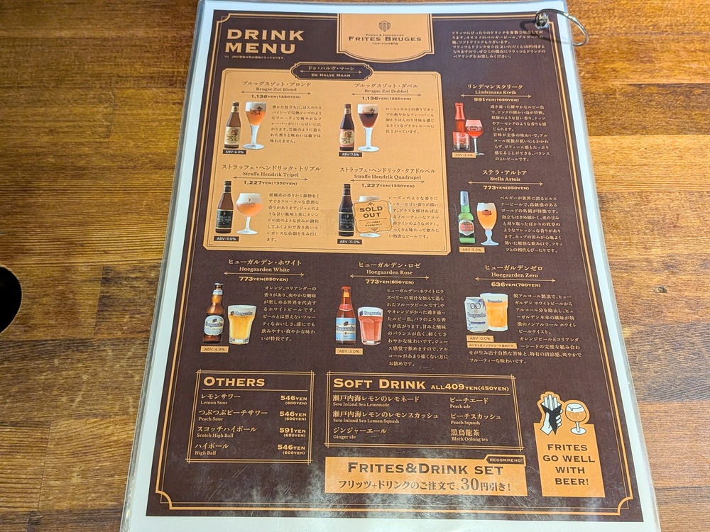 そして、ベルギーといえばビール!フリッツと一緒にベルギービールも楽しめます。