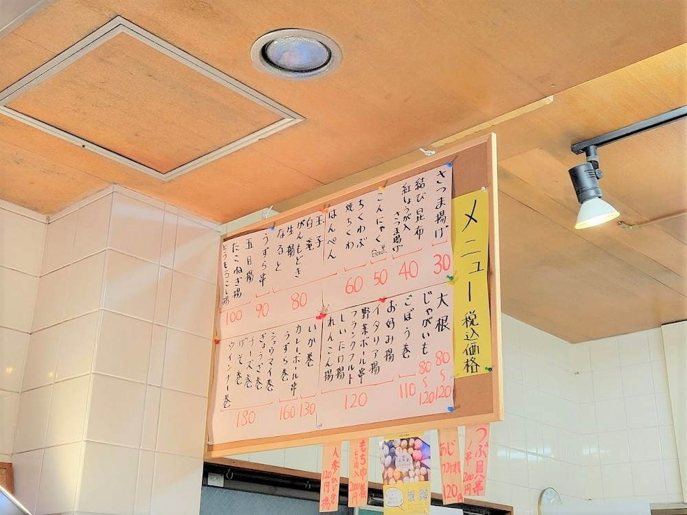 人気の商品だというイタリア揚げも食べたかったのですが、本日は残念ながら売り切れ。以前食べたことがありますが、ピーマンと玉ねぎ、そしてチーズとベーコンが入っていて、味が不思議とマッチしてておいしかったですよ♪おでんの具は手作りの無添加なので身体に優しいところもうれしい!