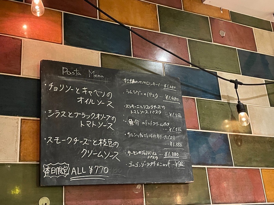 ちなみにこの日はお店の7周年イベントで、黒板左のパスタはオール770円でした!