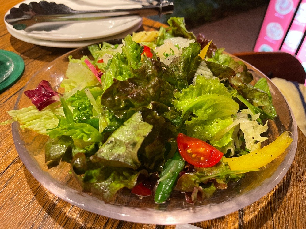 そして「厳選野菜のグリーンサラダ」(¥450)はこの量でハーフサイズ!2人で食べても満足する量です。