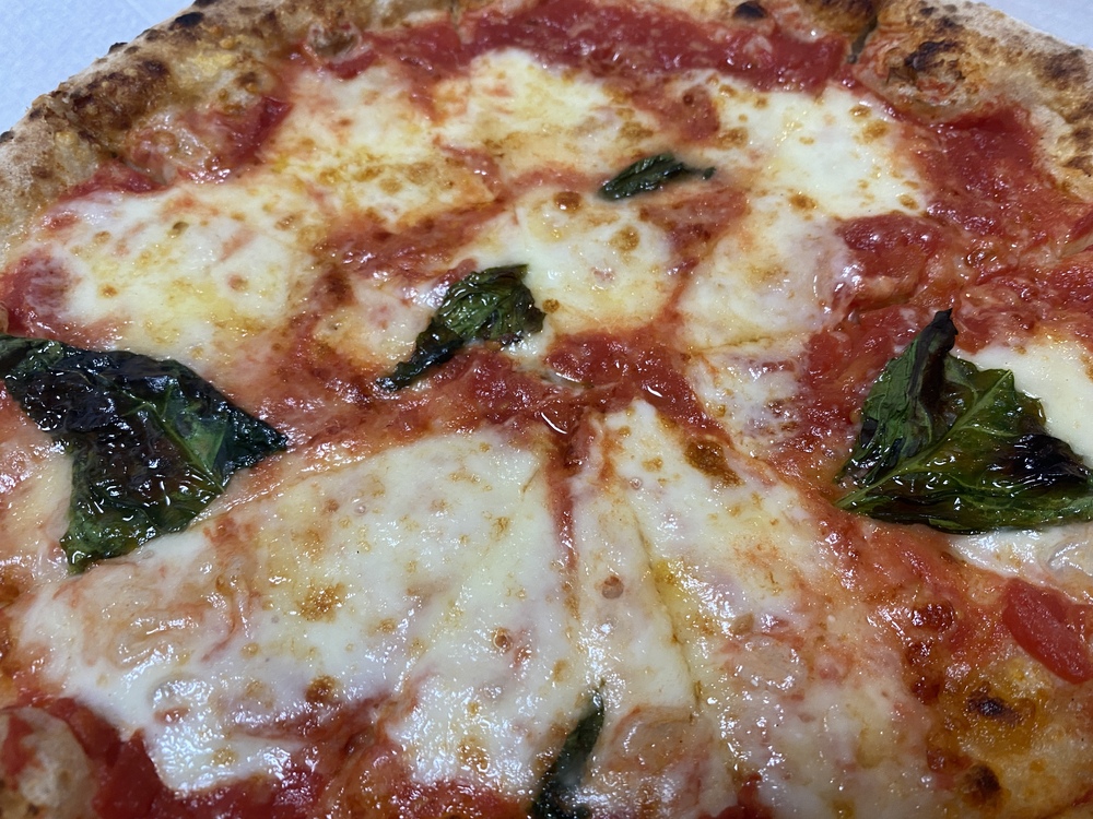高温のピザ窯で一気に焼き上げているので、生地の水分を閉じ込めつつ軽やかな食感を楽しめます。