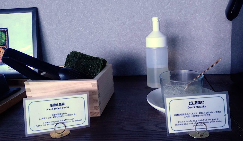 「みそぼーる」コーナーの隣には、のり、お酢と粉末だしも用意されています。ご飯と好みの具材を組み合わせて、アレンジすることができるのです。
