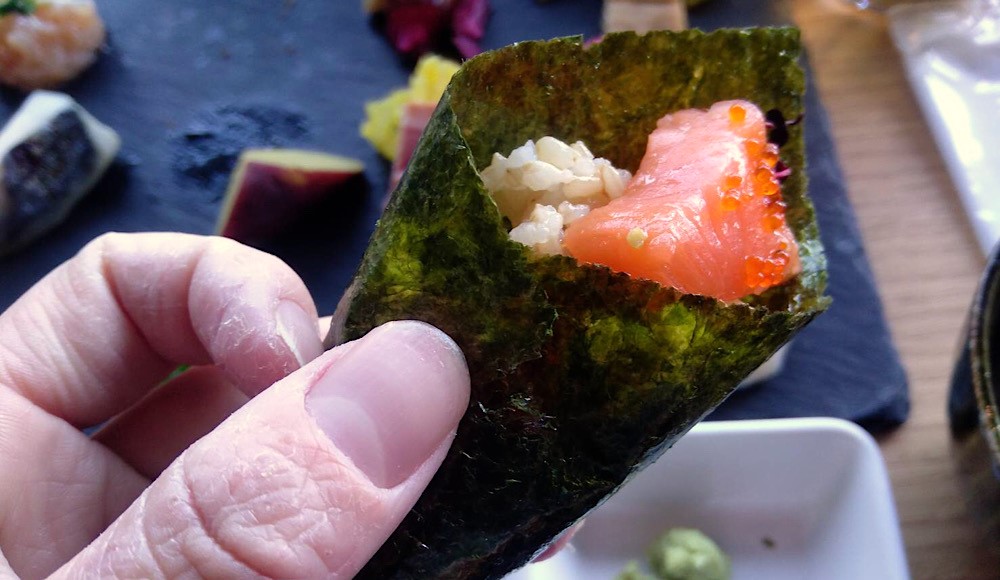 ご飯にお酢を混ぜ、のりで巻けば手巻き寿司の完成です。