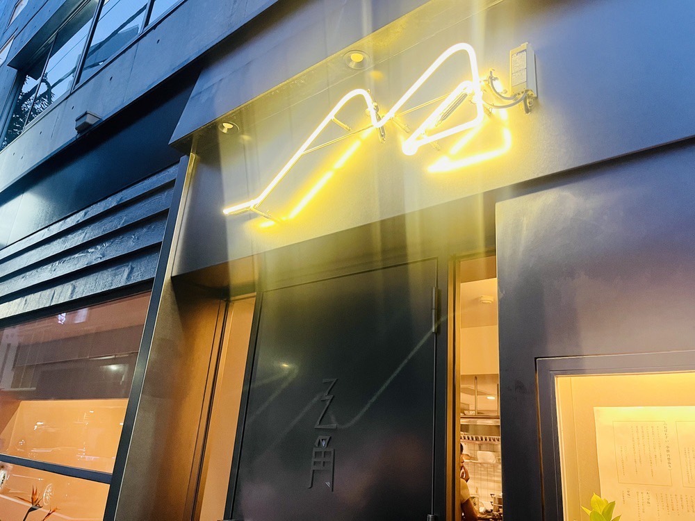 暗い夜道で、ひときわ目立つネオン看板が目印です。