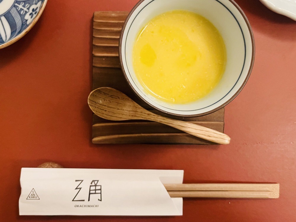 今回は、とうもろこしを使用した冷製スープをいただきました。
