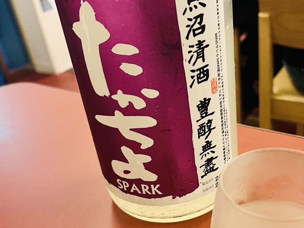 今回いただいたのは、たかちよというスパークリング日本酒。店員さんおすすめの日本酒です。
